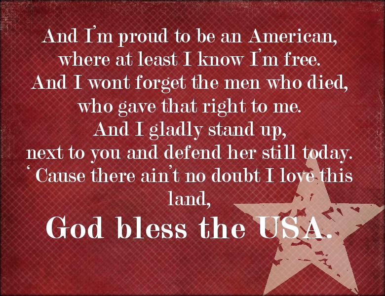 Background. Joe county fairgrounds in south bend, indiana. I'm proud to be an american where at least i know i'm free and i won't forget the men who died, who gave that right to me and i'd gladly stand up next to you and defend her still today 'cause there ain't no doubt i love this land!